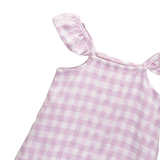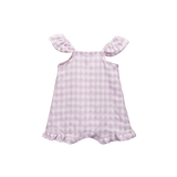 RIO CHECKERED RUFFLE ROMPER PURPLE